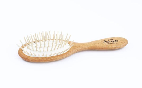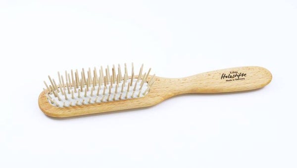 Die Haarbürste aus reinen Holzstiften ist für jeden Haartypen geeignet und wirkt auf die Kopfhaut stimulierend.